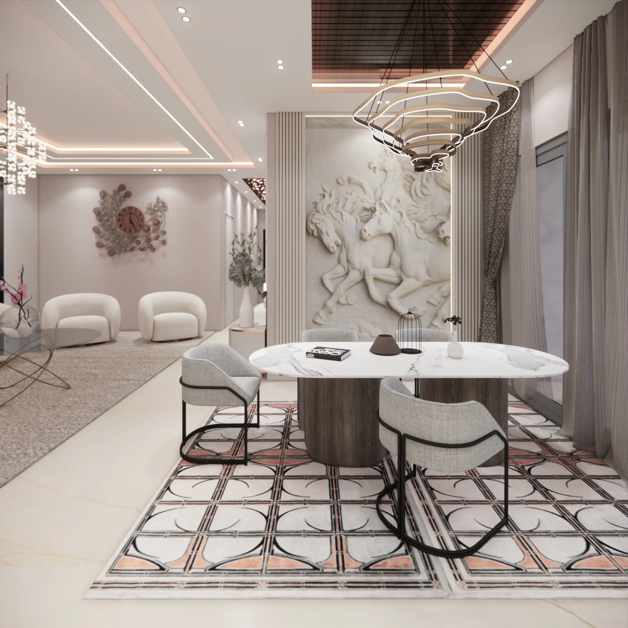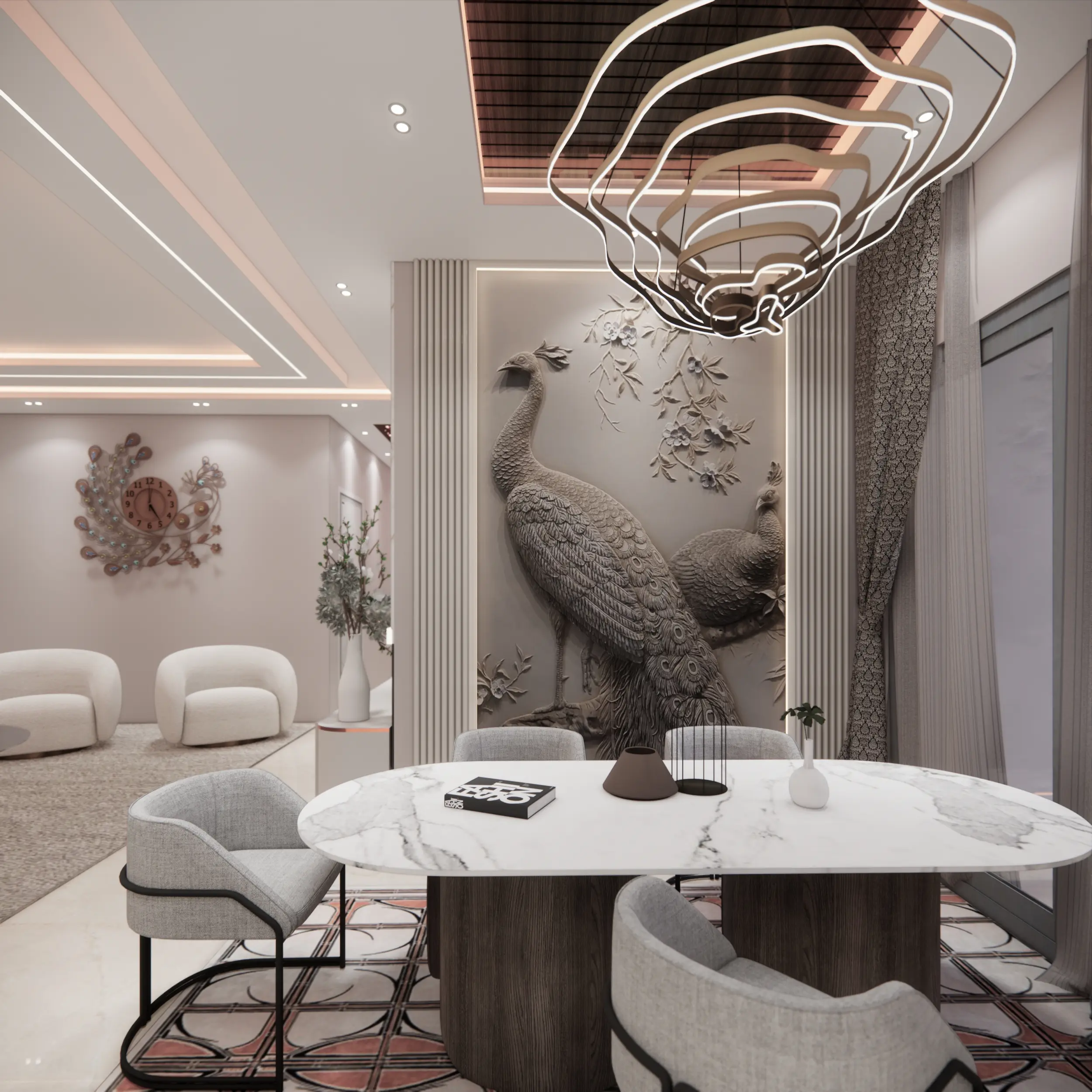 Lighting Design: Pendant and ambient lighting to enhance dining experiences.